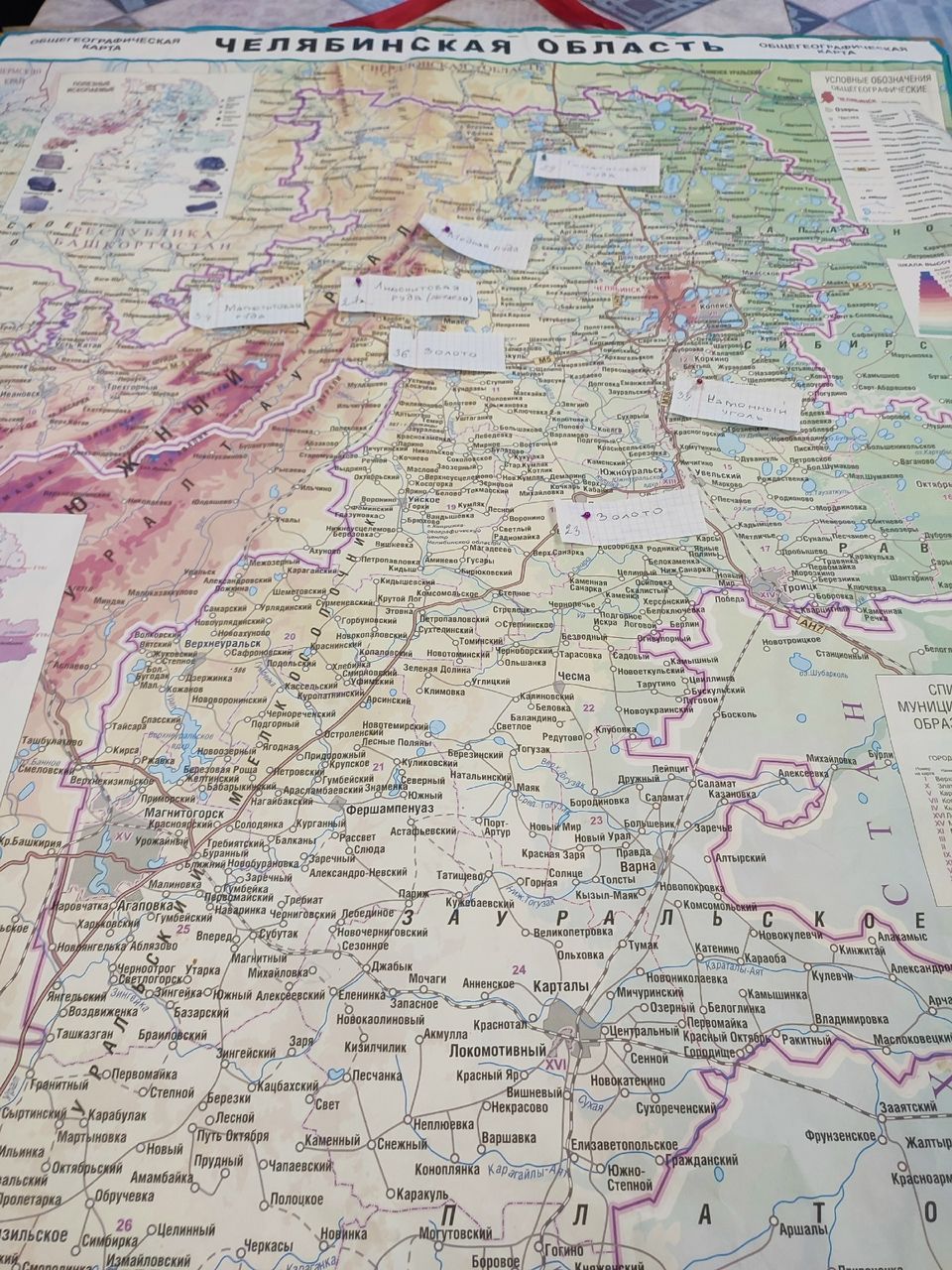 Завершающим стал пятый этап - практическое задание «Поиски месторождения». Участникам было предложено по карте Челябинской области определить расположение основных месторождений полезных ископаемых региона. Это испытание позволило школьникам применить географические навыки, умение работать с картографическими материалами и знания о природных ресурсах Южного Урала.