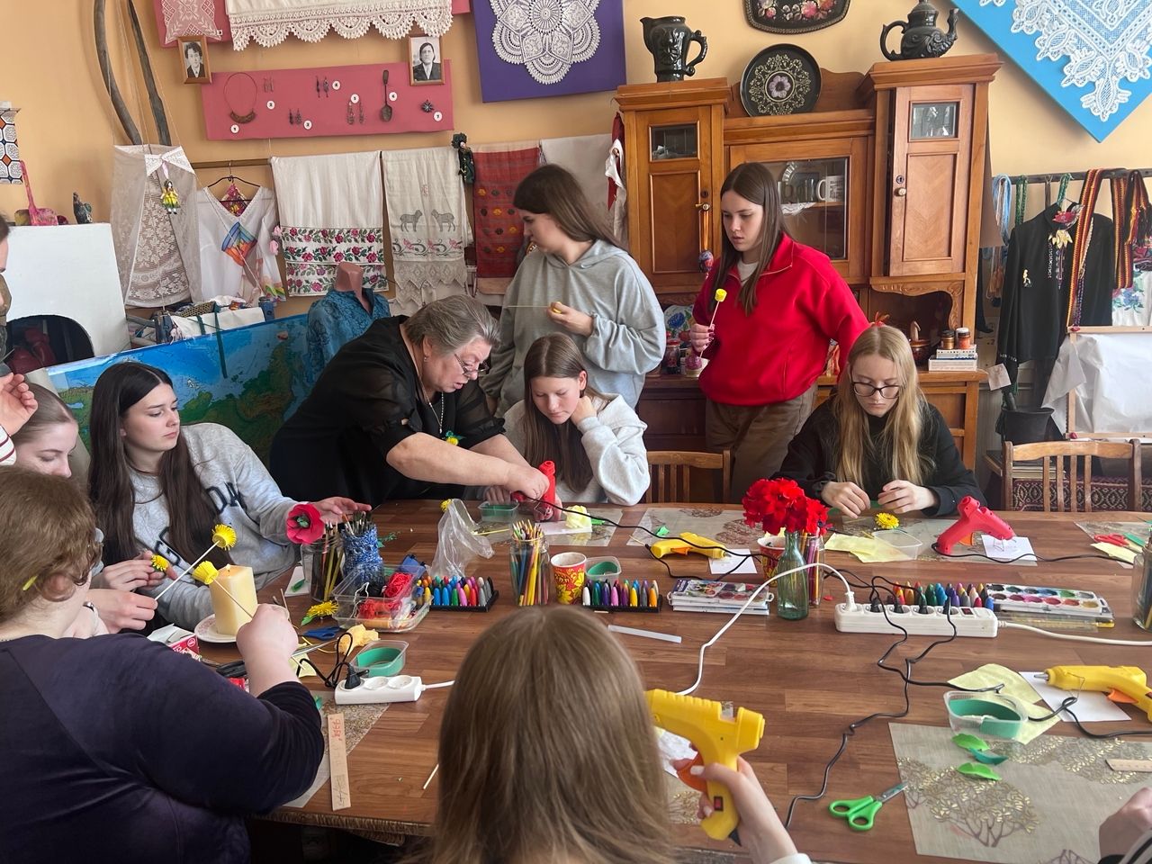 После обеда программа продолжилась мастер-классами и экскурсиями. Татьяна Александровна Мордавец, Олена Олеговна Новожилова, Екатерина Евгеньевна Тахистова, провели экскурсию по конюшне. Ребята узнали о роли лошади в жизни человека, особенностях общения с животными и основах ухода за ними. Далее участники продолжили работу на мастер-классах по интересам, которые провели Ольга Фоминична Щербакова и Галина Рихардовна Фигурина. Девочки приняли участие в мастер-классе «Брошь “Весна” из фоамирана», где изготовили яркие весенние украшения своими руками. Мальчики посетили мастер-класс «Волшебные пигменты», на котором познакомились со свойствами пигментов, их происхождением и использованием в исследовательской деятельности.