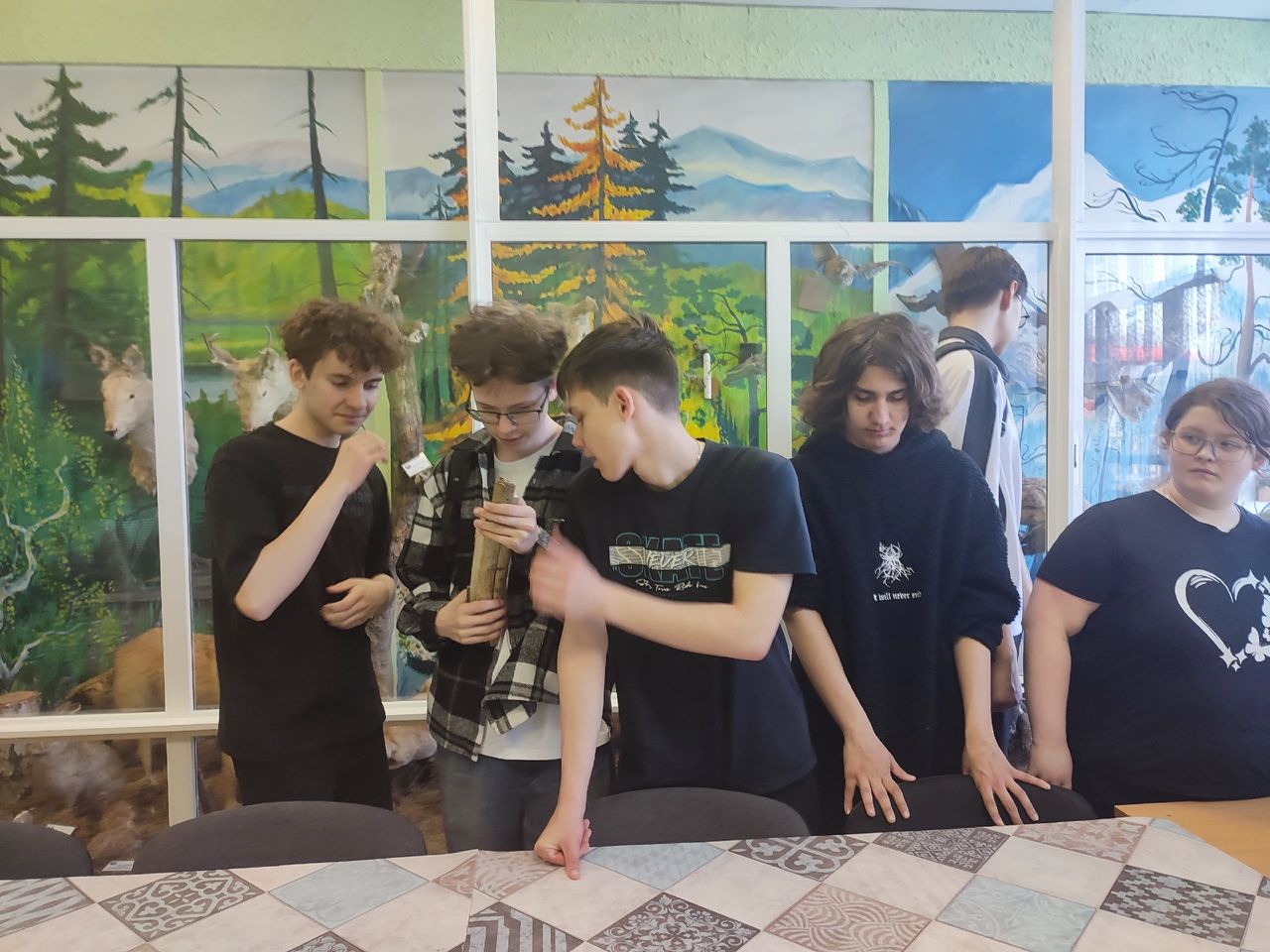 Следующим этапом стали экскурсии в Музей природы, Минералогический музей и Ботанический сад. Ребята с большим интересом познакомились с экспонатами Минералогического музея, активно задавали вопросы, а Светлана Ахсарбековна Самгина не давала готовых ответов, а направляла школьников к самостоятельному поиску, пробуждая исследовательский интерес. Особое внимание привлекли редкие экспонаты Музея природы — останки бивня мамонта и часть рогов большерогого оленя. Затем экскурсия продолжилась в контактном зоопарке, где Марина Николаевна Тихонова рассказала о животных, проходящих реабилитацию в центре. Также ребята посетили Ботанический сад, где познакомились с тремя растительными зонами: тропиками, субтропиками и пустыней.